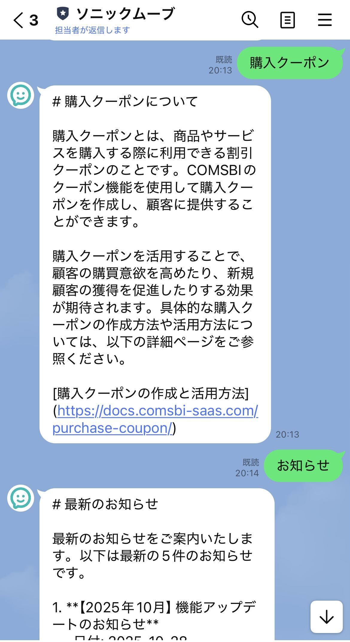 LINE公式アカウントの新機能「AIチャットボット(β)」とは? 活用メリットとCOMSBI拡張機能も解説 https://www.comsbi.com/blog/line-ai-chatbot-beta-comsbi/ Thu, 04 Dec 2025 23:34:45 +0000 https://www.comsbi.com/blog/?p=7170 LINE公式アカウント運用において、多くの企業・店舗さまが課題として挙げるのが「問い合わせ対応」です。営業時間外に返信できない、同じ質問が何度も届くなど、現場負担は想像以上に大きいものといえます。 その中で 2025年1 ...