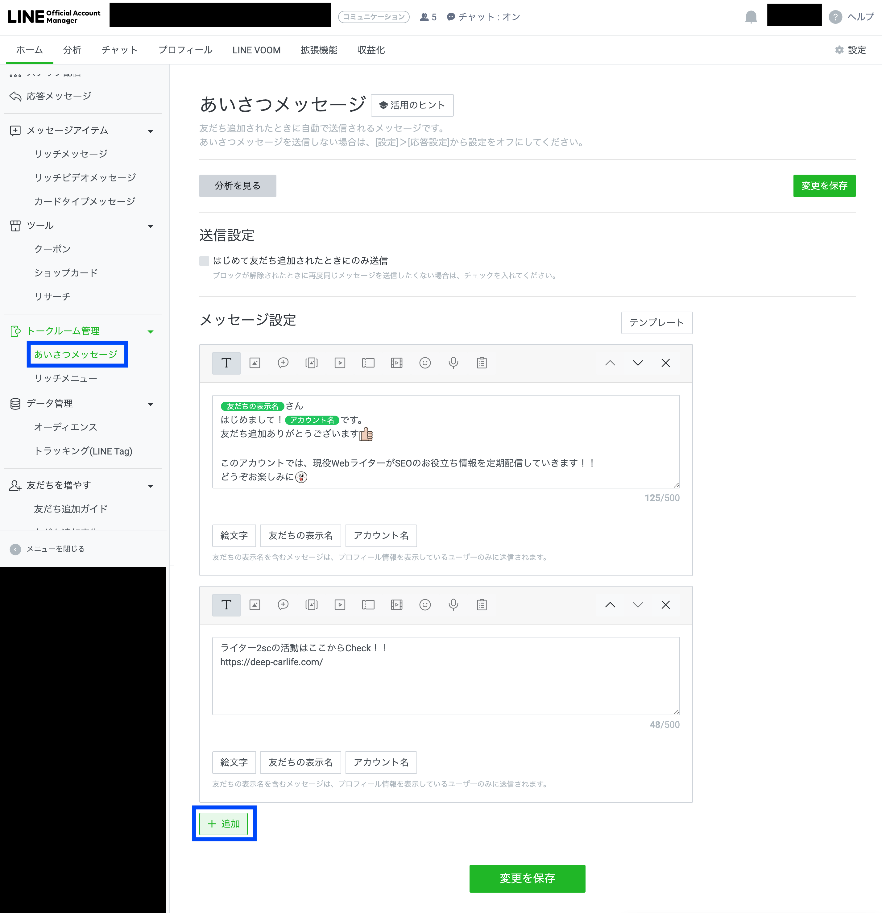 あいさつメッセージでの設定方法