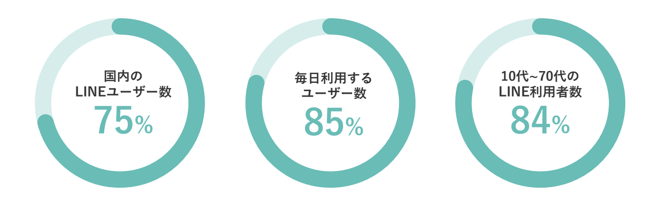 NTTドコモ モバイル社会研究所によると、10代から60代で8〜9割、70代でも7割がLINEを使用しているとの結果が出ています。つまり自社サービスをLINEミニアプリで出すことで、若年層はもちろんシニア層もターゲットにできるのです。
