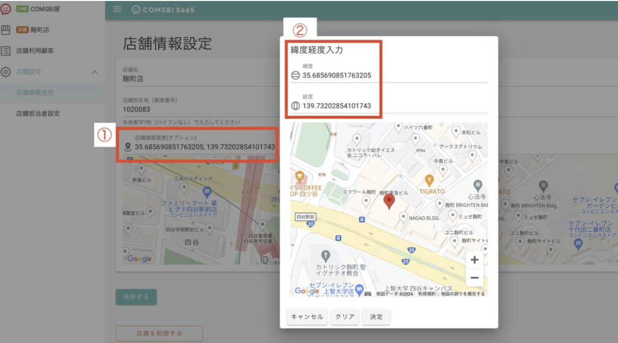 3月にリリースした機能です。店舗一覧、クーポン(配布用QRコード)、ポイント、スタンプカードにGPS位置情報を設定できるようになり、指定箇所以外では取得できないようになりました。