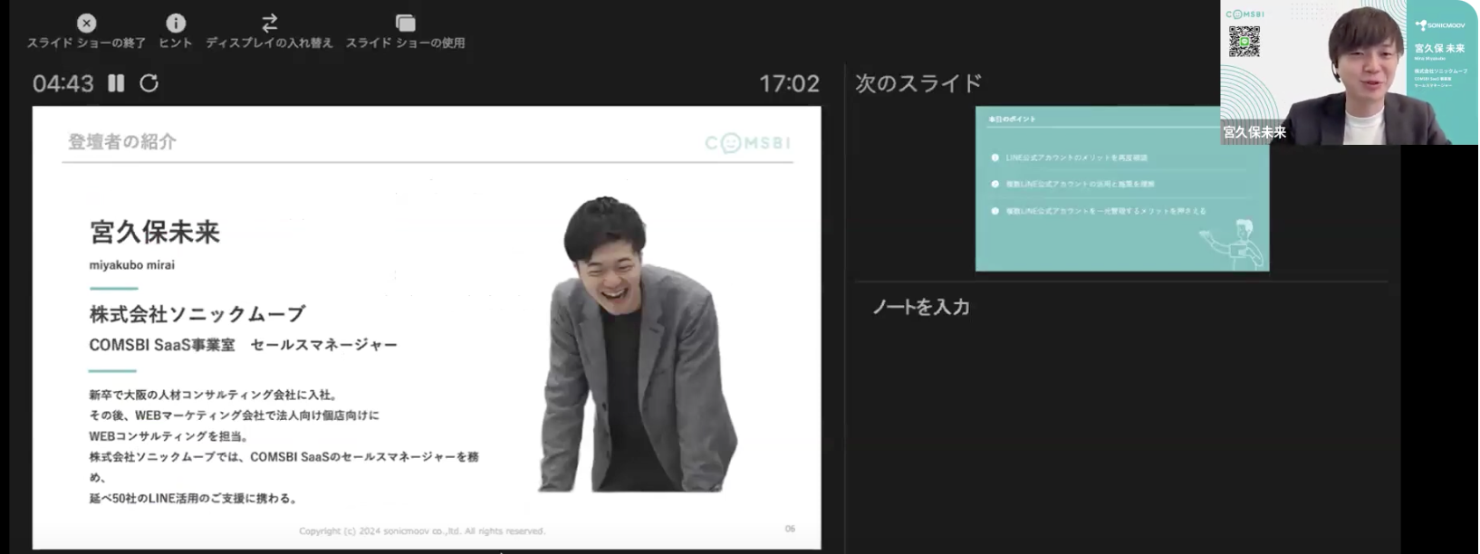 ウェビナーで実演したCOMSBIの機能について