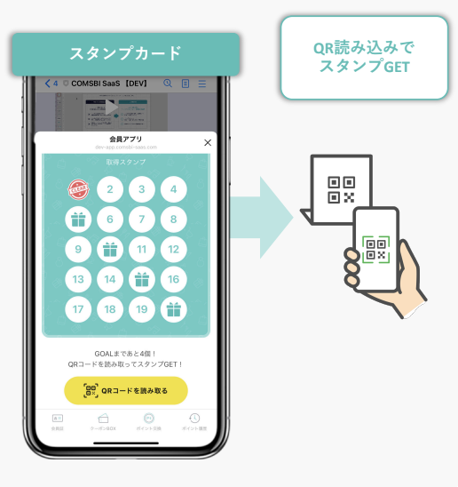 COMSBIのスタンプカード機能なら用途に応じて、カード型・リスト型の2種類のスタンプカードが作成できます。