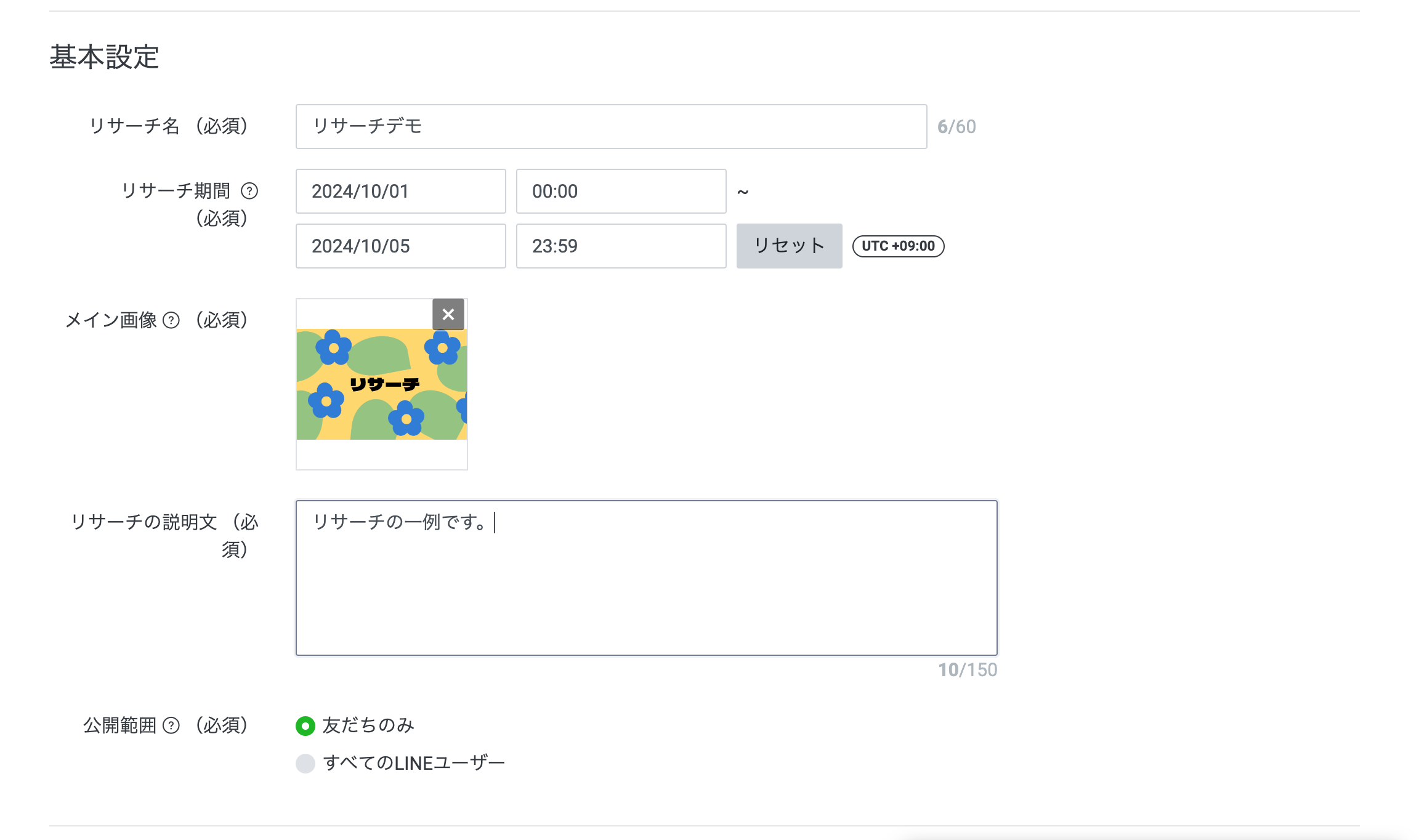 - 公開範囲(友だちのみorすべてのLINEユーザーが指定可)